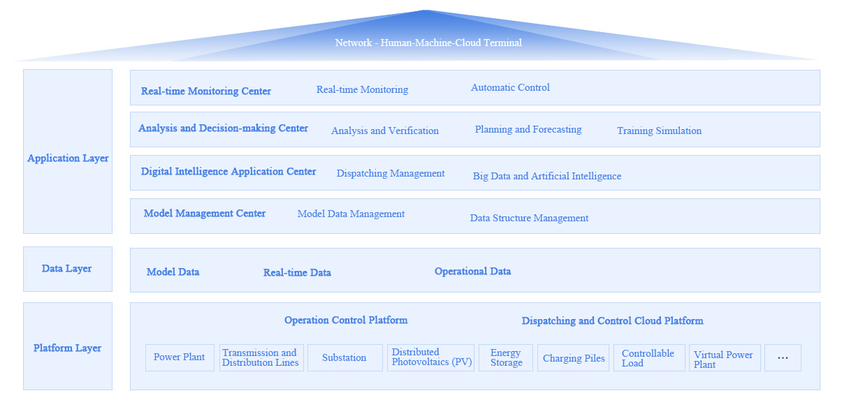 • It fully integrates the State Grid's new-generation dispatching technical support system and the CEP standardized framework of China Southern Power Grid to achieve horizontal integration, vertical penetration, and cloud-edge collaborative interaction.